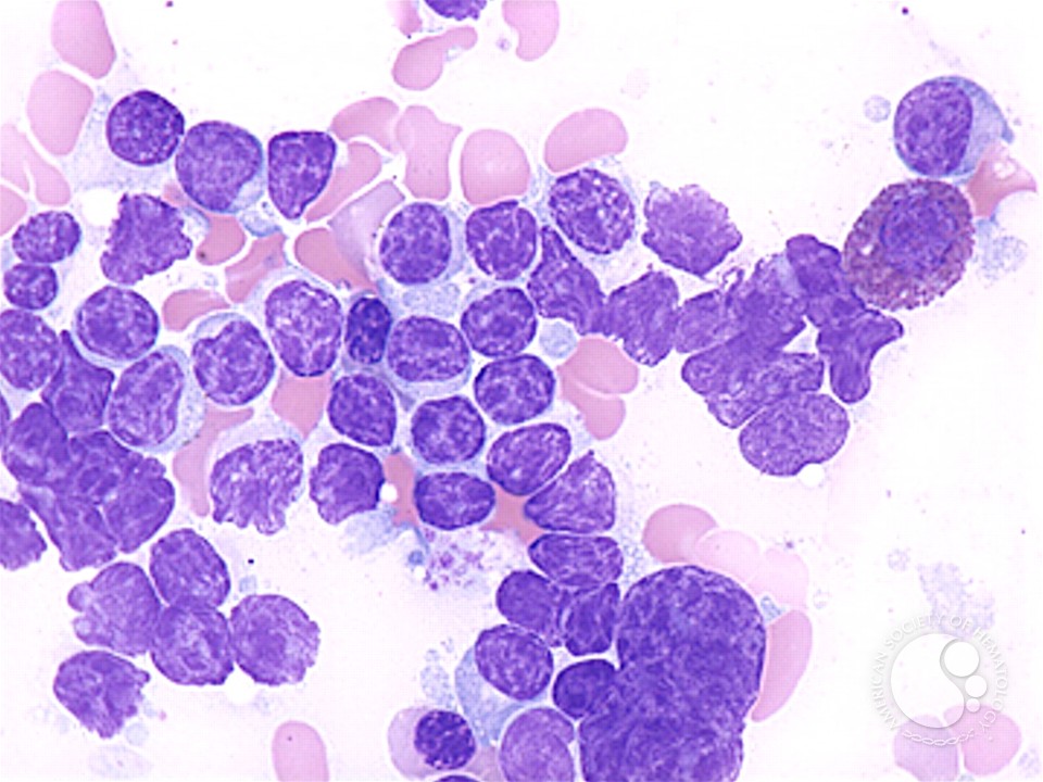 Malignant white blood cells crowd out normal cells in CLL – image courtesy American Society of Hematology |